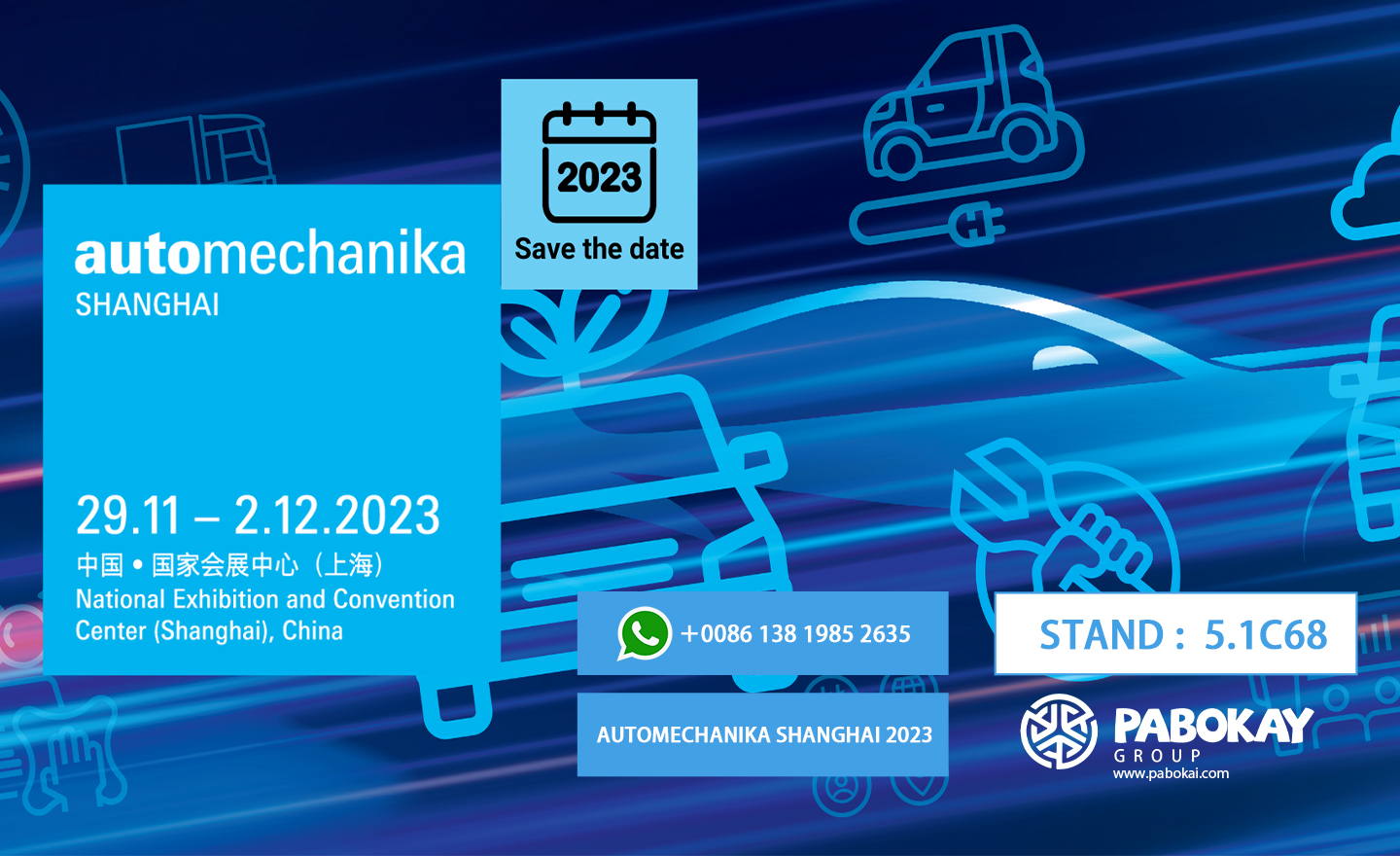 Dates: 11/29/2023 - 12/2/2023 Venue: National Exhibition and Convention Center, Shanghai, China Stand: 5.1 C68